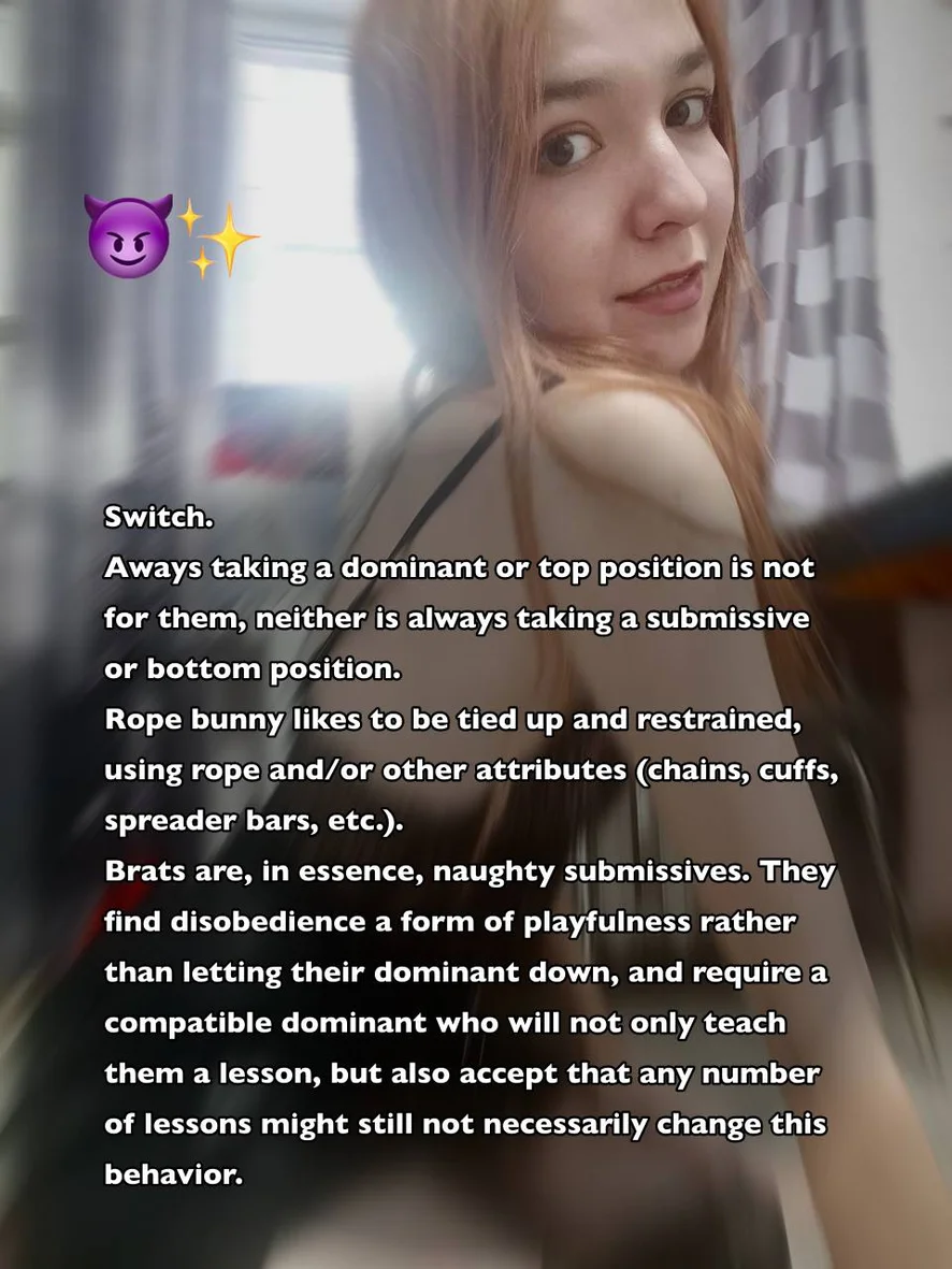 Hello there! My name is Milly and i am little bratty foxy girl. I love BDSM, and im switch in it so you can enjoy your time with me both dominating and being dominated. I like polite people, dont like humiliations for myself, and i hate impudent and rude people